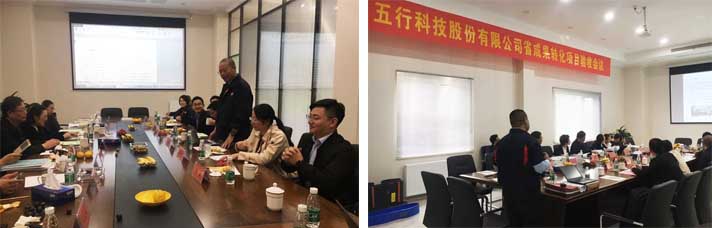 首先,沙总代表公司对参加本次验收会的诸位领导和专家表示了热烈欢迎;在简要介绍公司的基本情况之后,王总对该项目的研究背景、技术基础、工艺路线、实施情况、产品优势、研究成果和经济效益等进行了清晰阐述;验收会专家仔细审核材料后,针对自主研发核心技术、工艺难题解决方案、投资建设完成情况、专项经费使用管理等方面进行了详细询问,认为五行科技产品的主要性能指标均达到国际先进水平;最后,全体验收委员会成员表态并签字,一致认为该项目完成了合同规定的各项考核指标并同意通过本次验收。五行科技的省科技成果转化项目验收会取得圆满成功!