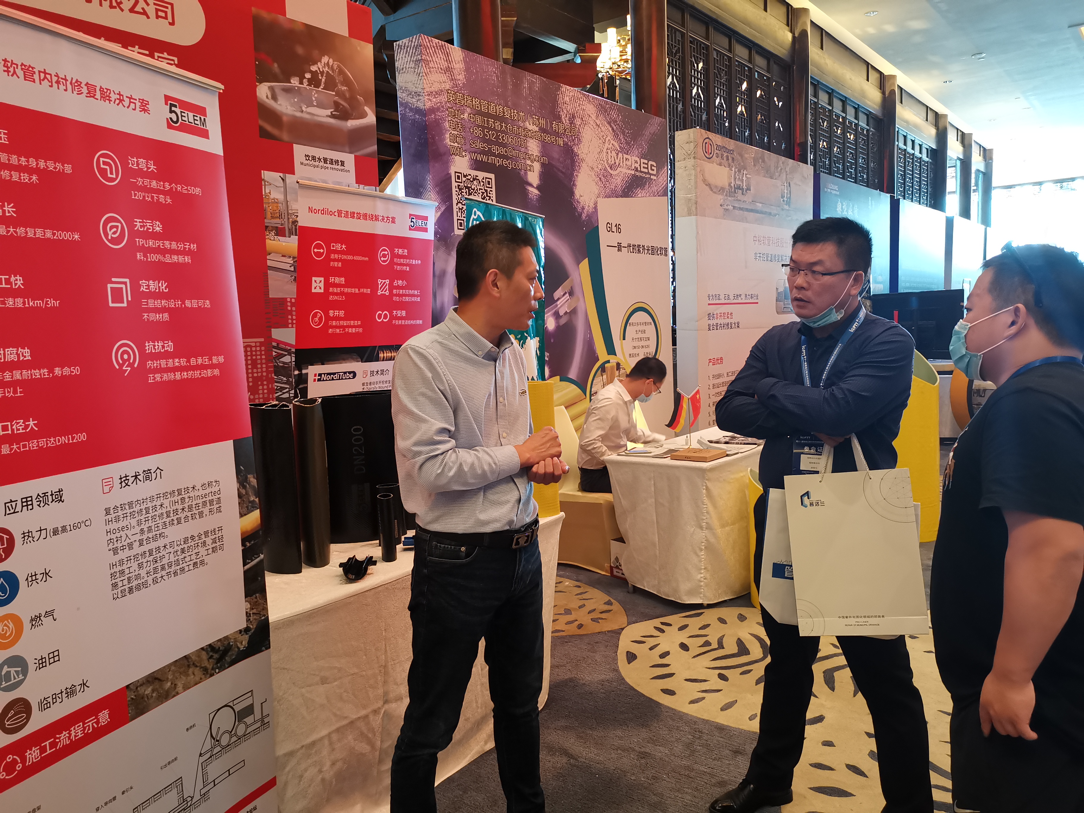 承载城市梦想,“管”护美好生活,五行科技携带“Nordiloc管道螺旋缠绕解决方案”、“市政供水CIPP内衬更新解决方案”、 “IH-承压复合软管内衬更新解决方案”三类非开挖更新的专业技术与产品在会议期间进行了现场展示,与行业专家进行深入的技术交流,并得到了与会代表的一致好评。