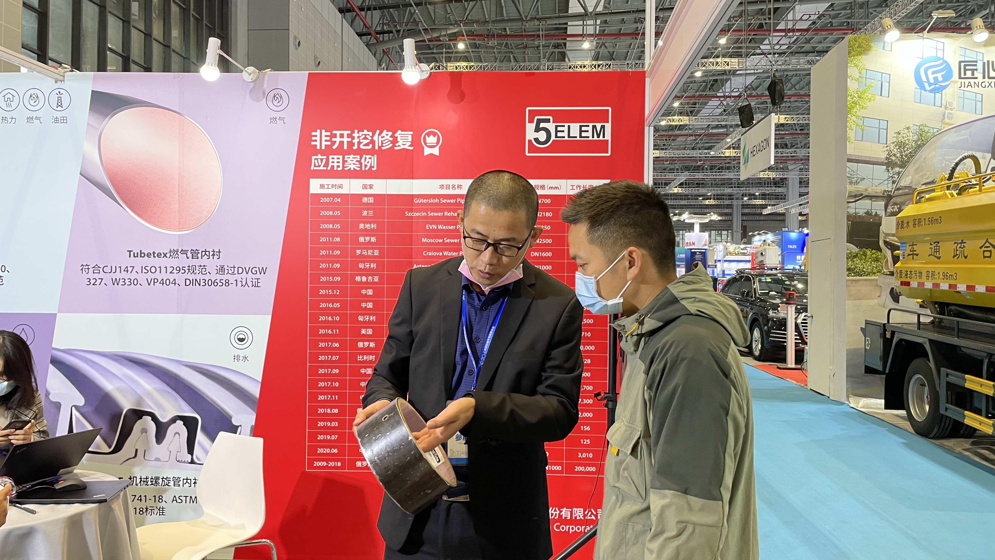 五行科技作为全球管道服务商Norditube的战略合作伙伴,携带多款技术方案亮相本次盛会。其中,两款源自欧美技术的Nordiflow CIPP内衬与Nordiloc S.F. 机械螺旋管内衬吸引了诸多业内专家的关注。