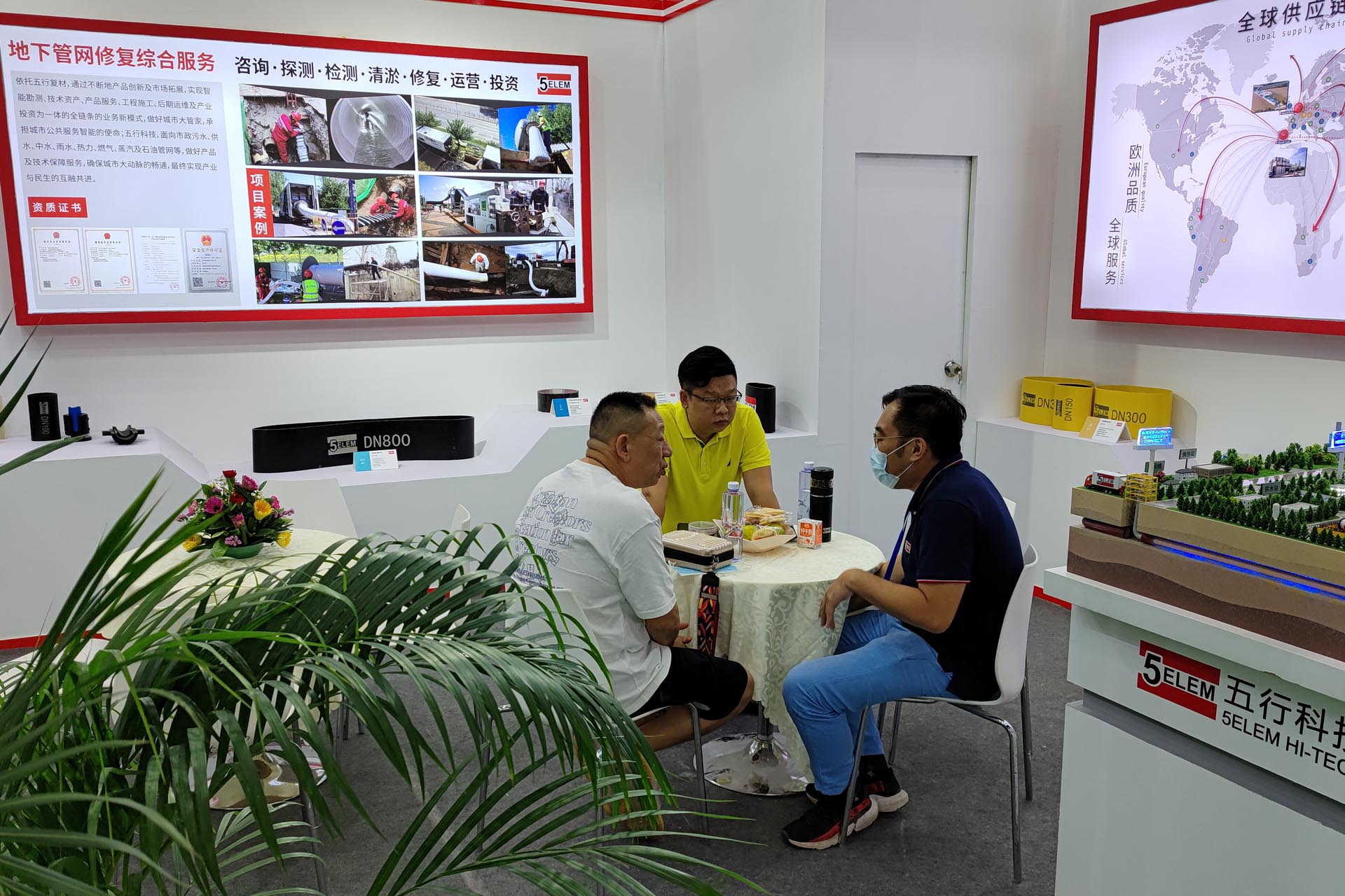 展会期间,五行科技作为地下管网更新的领军企业,以过硬的技术实力、优质的核心产品,吸引诸多参展客商驻足交谈;以丰富的行业经验,高效的解决方案,专业深入的现场讲解赢得了客户一致好评的同时达成多项合作意向,充分展示出五行科技在地下管网更新综合服务的核心竞争力。