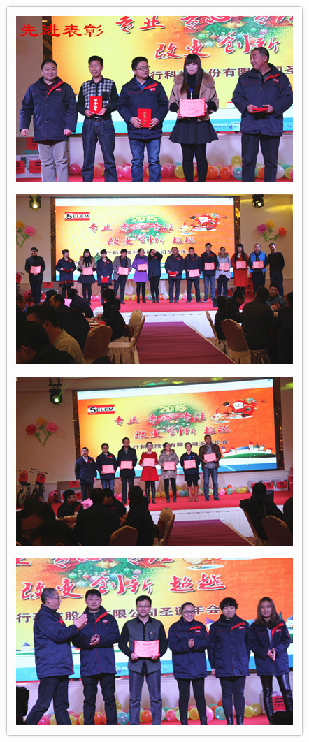 年会中,公司董事长沙月华、复合软管事业部总经理陈勇、常务副总经理刘玲、副总经理周杉鸿、技术总监顾春东分别为先进人员颁发证书。领导、同事激情献唱。